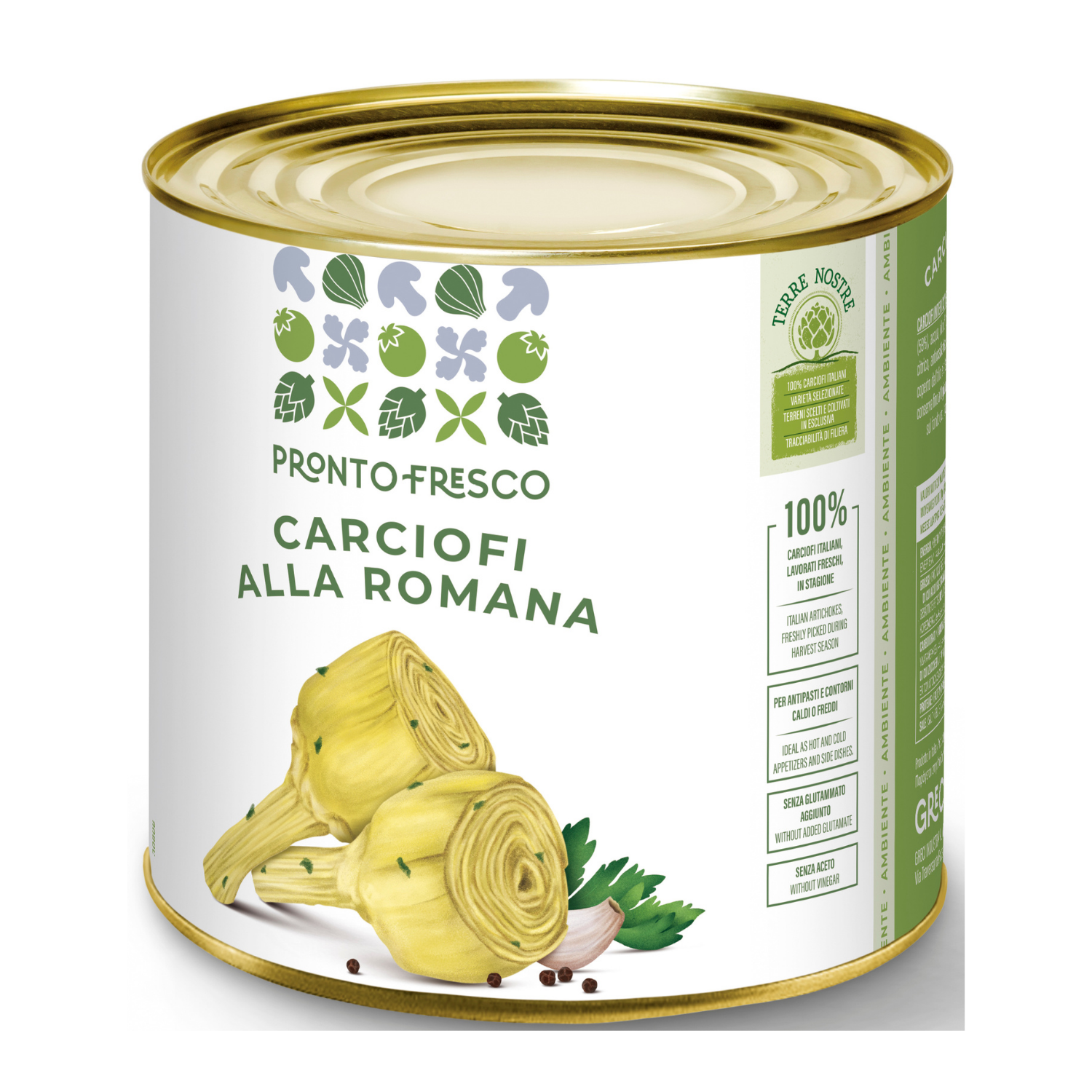 Item Code: GRE010 Description: Greci Artichoke Alla Romana - 2.5Kg Unit: CTN Packing: 6 Size: 2650 Ml Barcode: 8004980000595 Shelf Life: 37 Months Storage: Dry