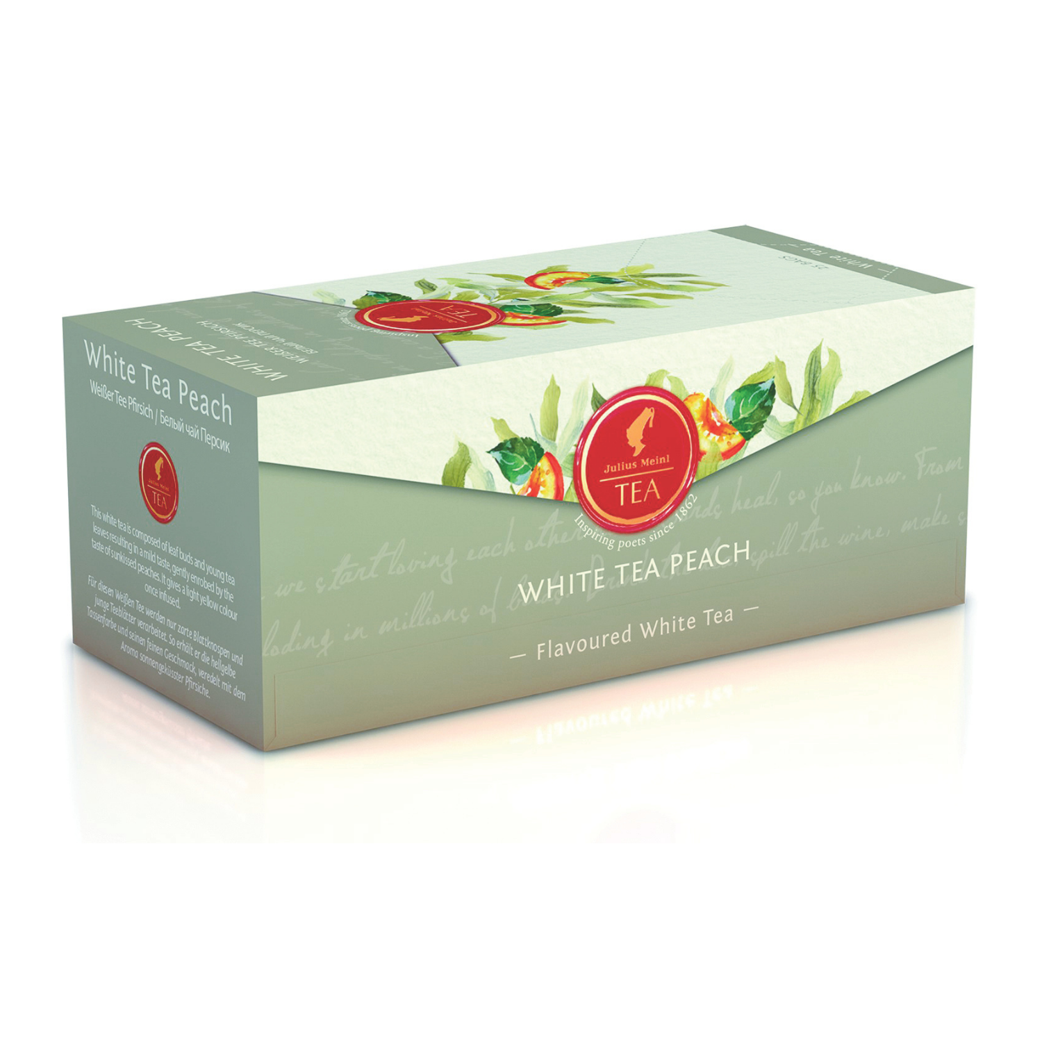 Item Code: JMC070 Description: Julius Meinl Single Bag White Tea White Tea Peach (25 Bags) Unit: PKT Packing: 1 Size: 25 Bag Shelf Life: 36 Months Storage: Dry