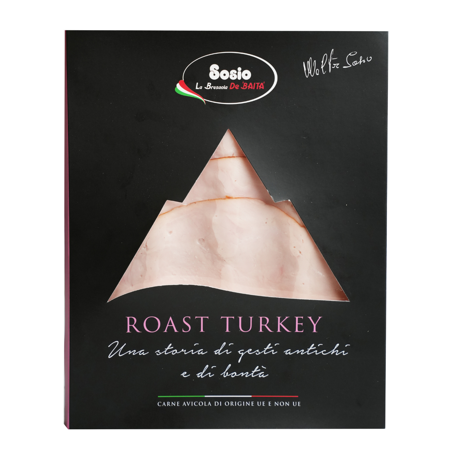 Item Code: SOS015 Description: Sosio Turkey Breast - 100 G Unit: CTN Packing: 10 Size: 100 G Barcode: 8016530000252 Shelf Life: 2 Months Storage: Chilled