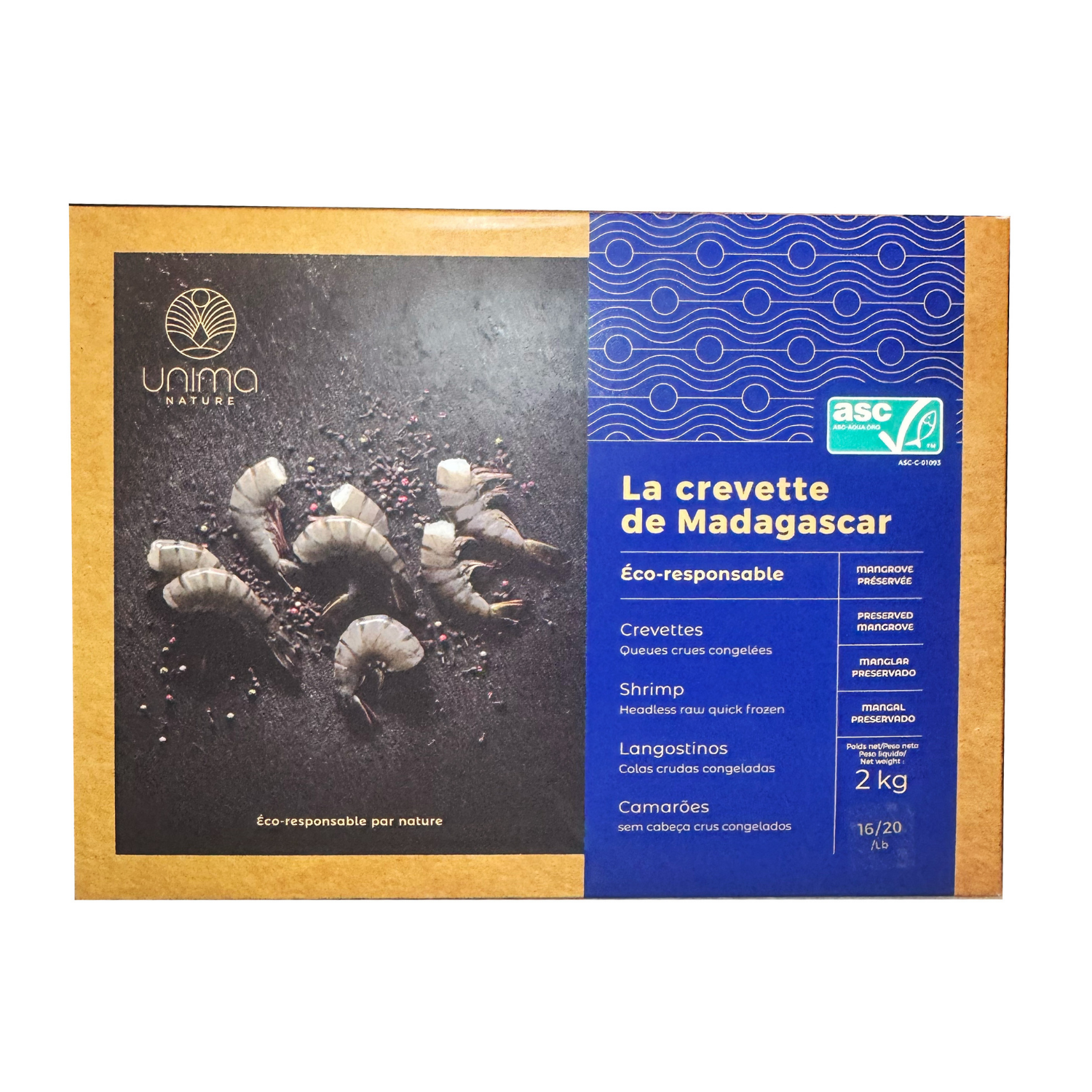 Item Code: UNI003 Description: Madagascar Shrimp Asc 100% Iqf - Hlr 16/20 Unit: KG Packing: 6 Size: 2 Kg Barcode: 3700156967338 Shelf Life: 12 Months Storage: Frozen