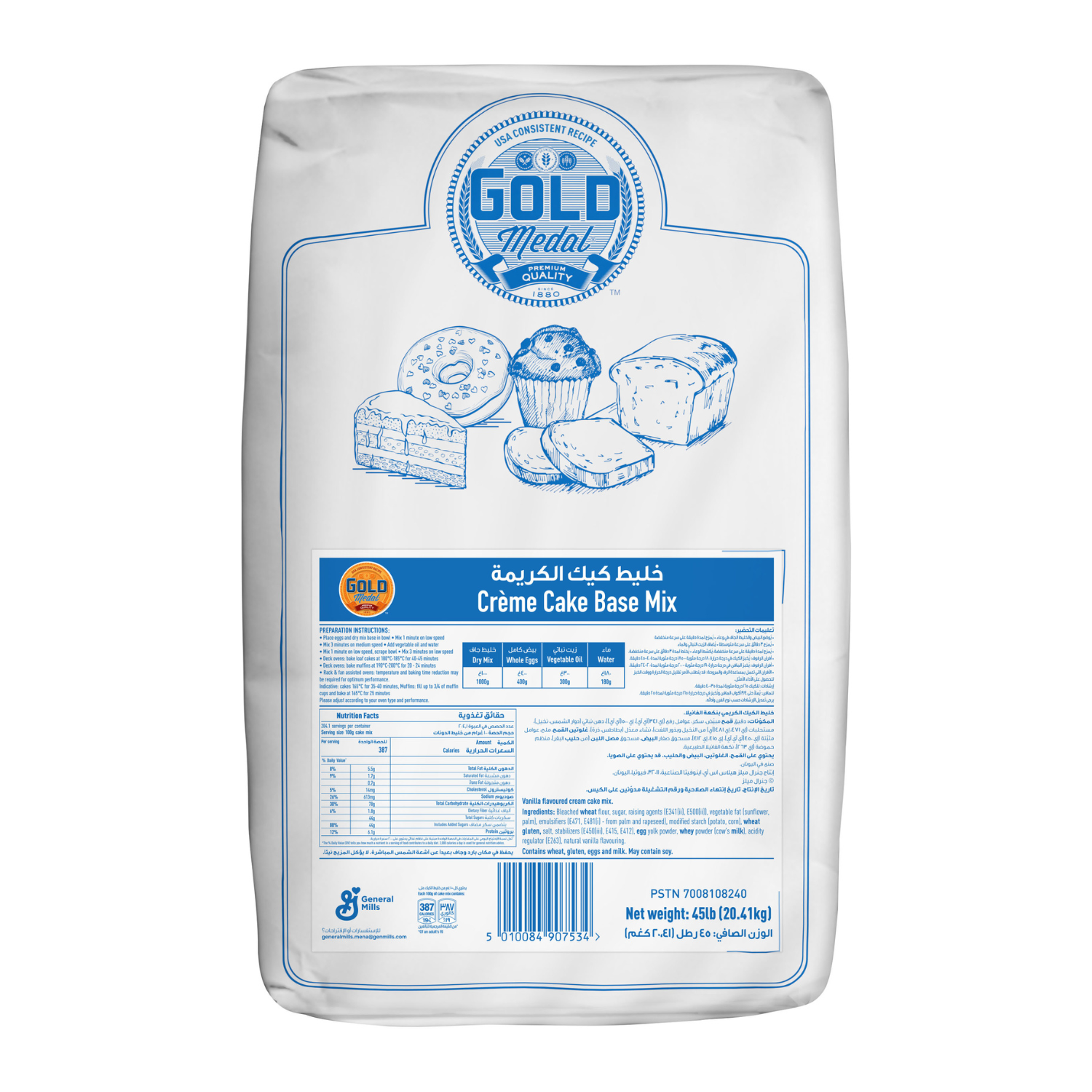 Item Code: GML001 Description: Gold Medal Chocolate Cream Cake (45 Lb) - 20.41 Kg Unit: BAG Packing: 1 Size: 20.41 Kg Shelf Life: 12 Months Storage: Dry